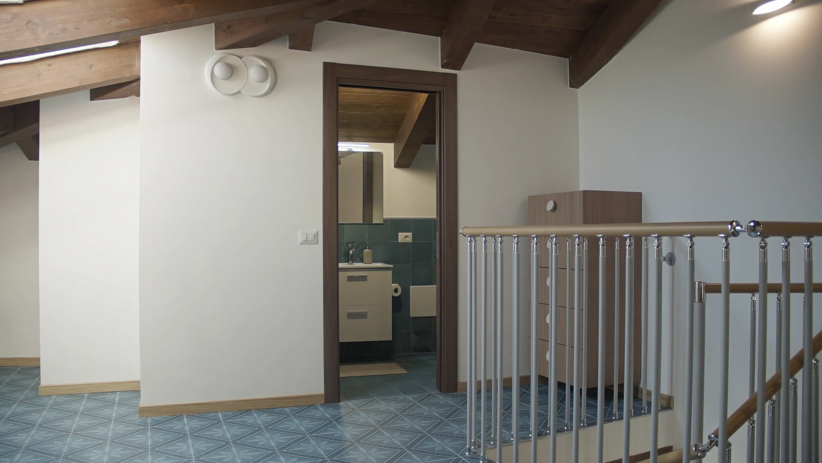 Appartamento articolato su due livelli con scala interna, composto di Soggiorno/Cucina al primo livello e camera da letto con bagno al secondo livello.
